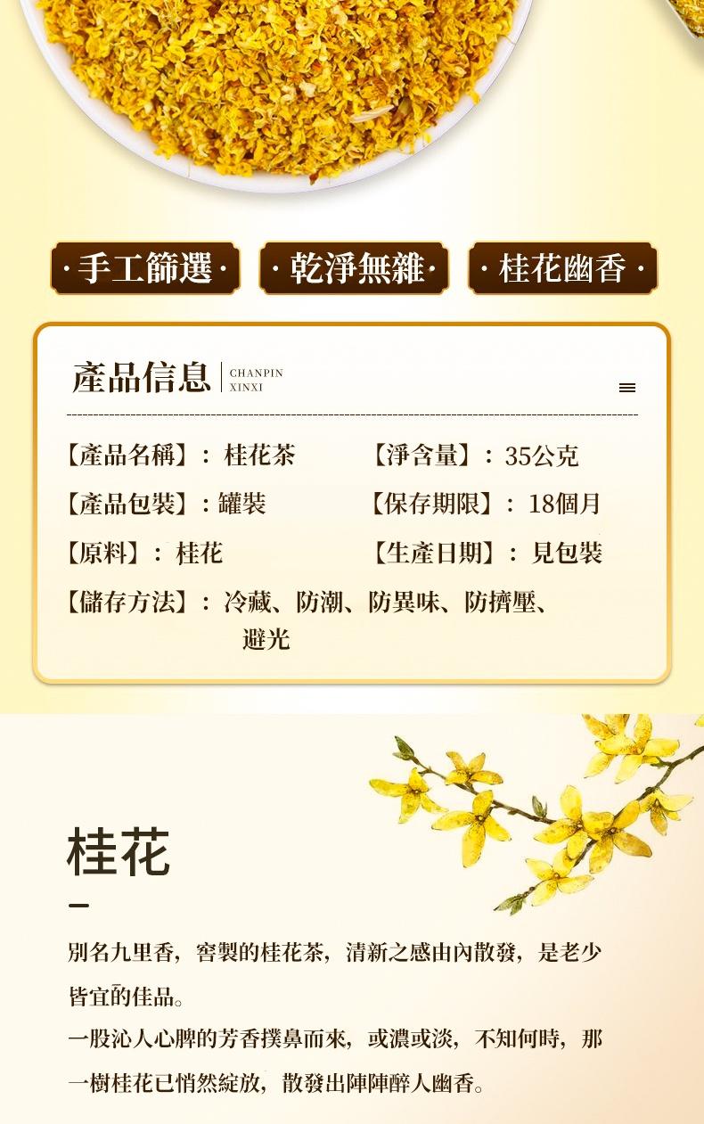 4分鐘前【限時特惠 買2送1】台灣製作,無農藥,無添加劑,無熏硫,自然農法種植,美容養顏,緩解腸胃不適,消除口臭,綠色天然的養生佳品。一罐可沖泡50次。【下單贈送花茶過濾球】 - 【買2送1,均價433/瓶】三瓶桂花乾-NT$ 1299