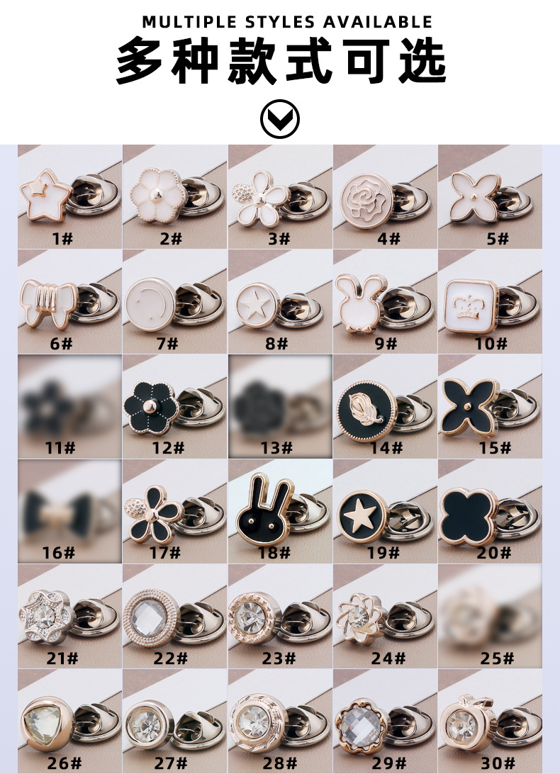 半小時前免钉防走光扣 衬衫开衫领口固定調節鈕扣 低领装饰胸针 別針 可拆卸隐形扣子 - 團購價30入組1199